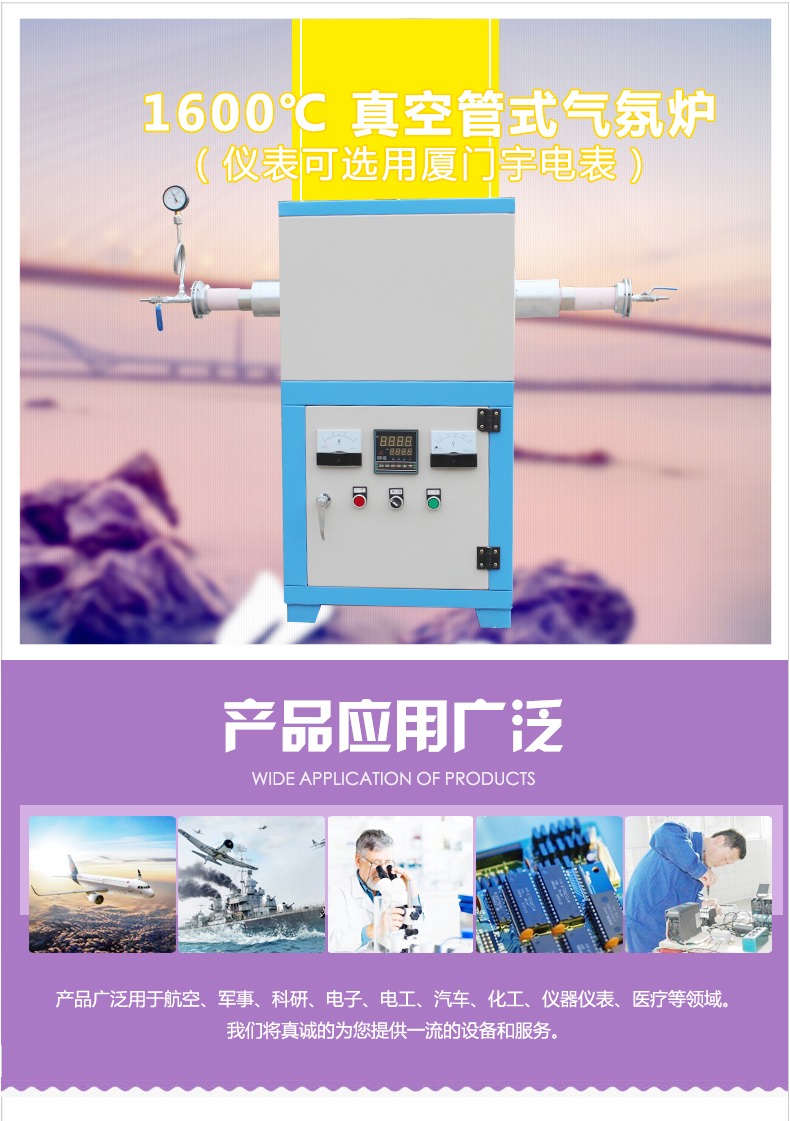 本系列真空管式氣氛爐為周期作業(yè)時(shí),額定溫度為1600℃,供實(shí)驗(yàn)室、科研單位、工礦企業(yè)做在低真空狀態(tài)下或氣氛保護(hù)下熱處理加熱之用。